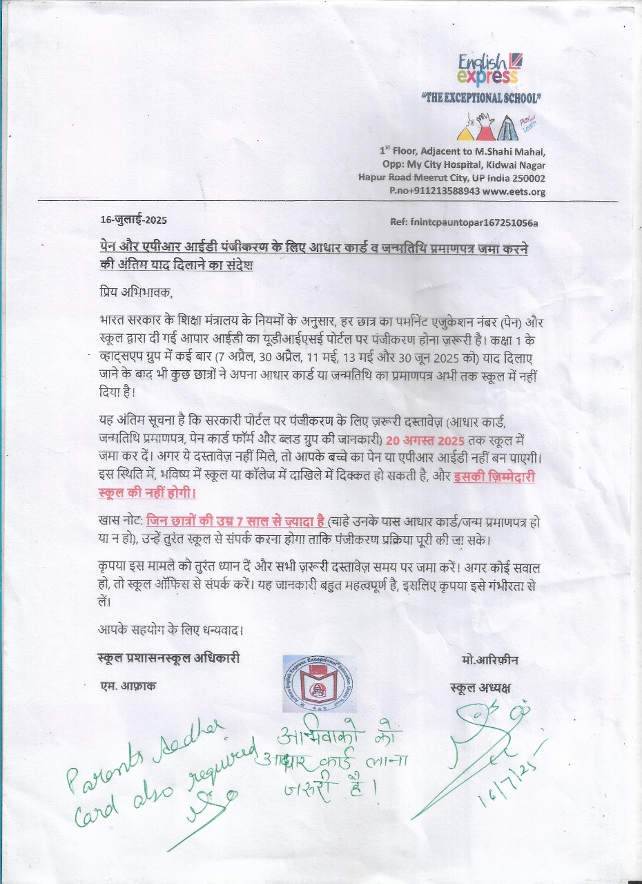 1st floor , adjacent to M Shahi Mahal Kidwai Nagar opp My City Hospital Meerut City, Uttar Pradesh, India 250002